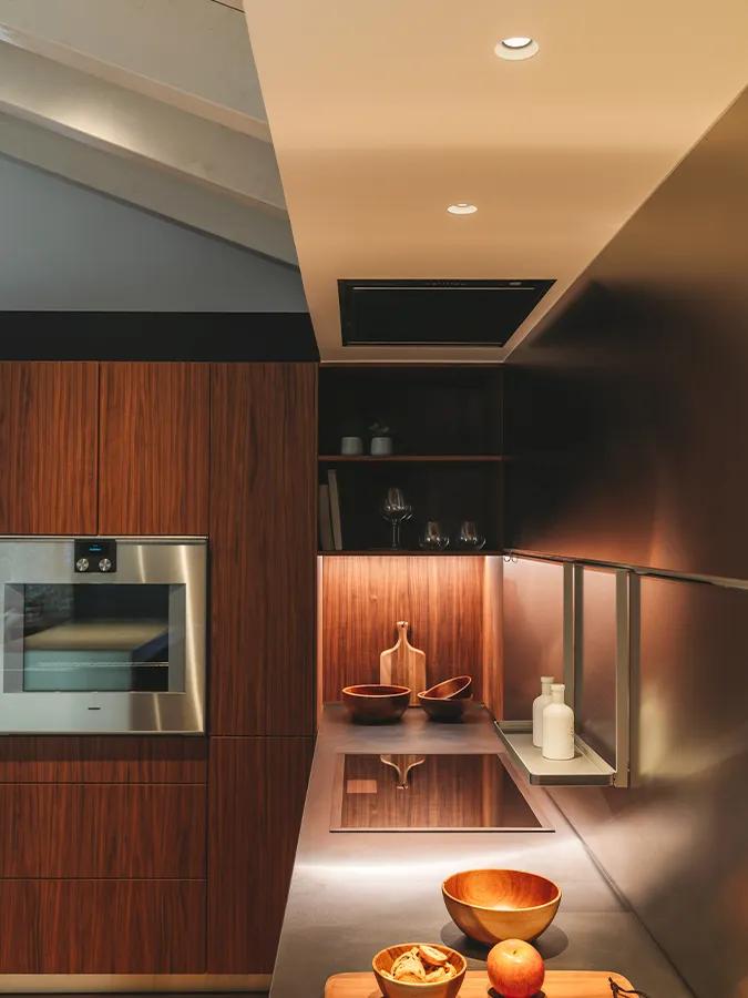 Thanks to its dynamic control and adjustable LED colour temperature, it allows the creation of personalised atmospheres full of nuances. A functional and refined complement, conceived for interior design projects seeking flexibility and visual comfort.