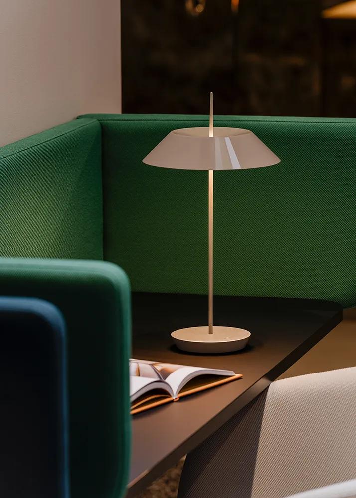 The Mayfair Mini table luminaire offers a modern reinterpretation of the traditional 19th-century bouillotte table lamp.