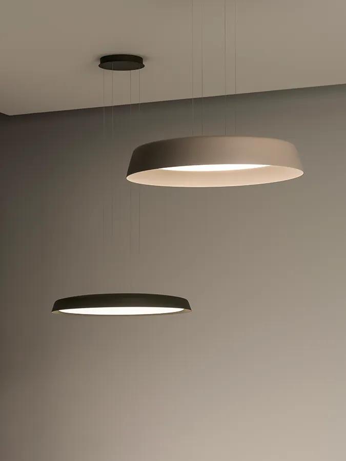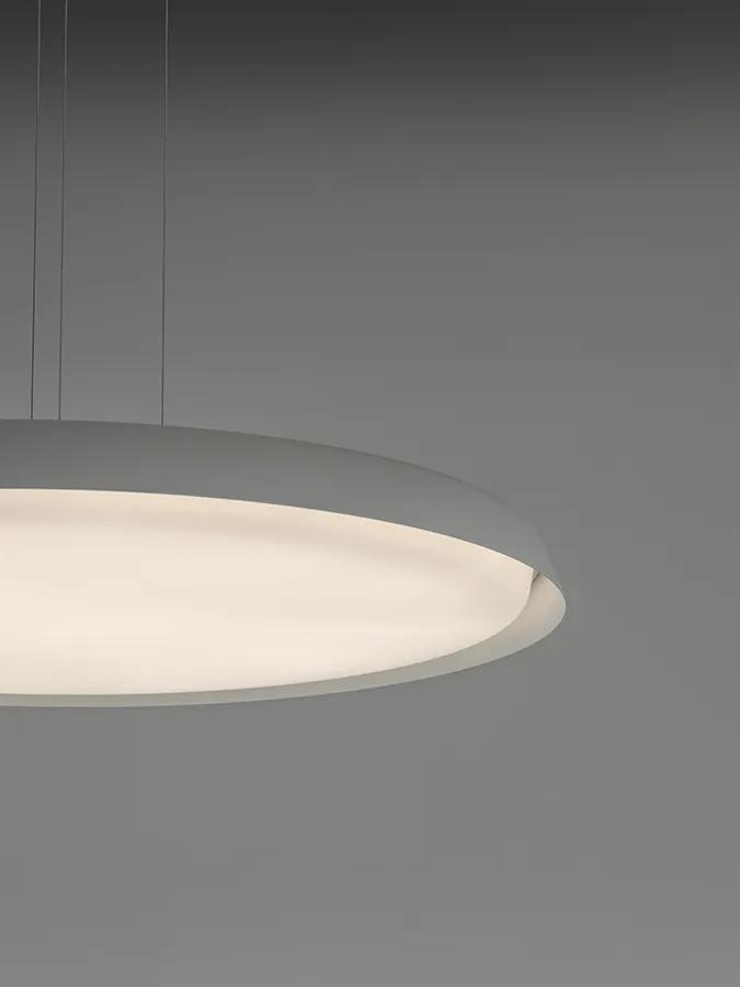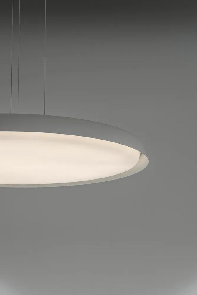 The Bigger pendant luminaire conveys a sense of lightness by combining its large dimensions with ultra-thin cables that keep it suspended.