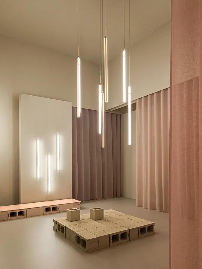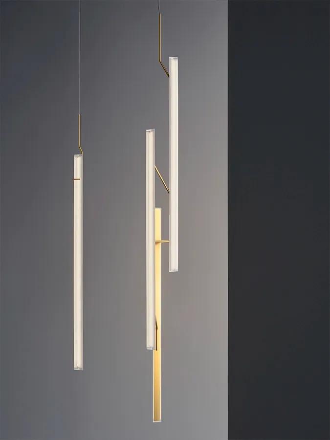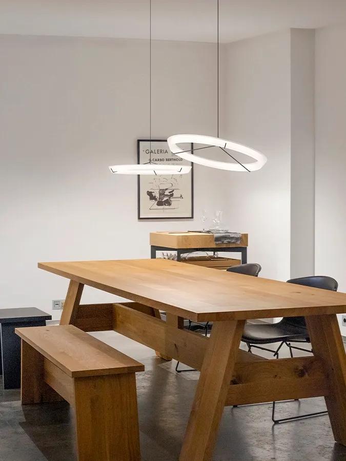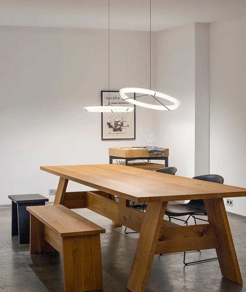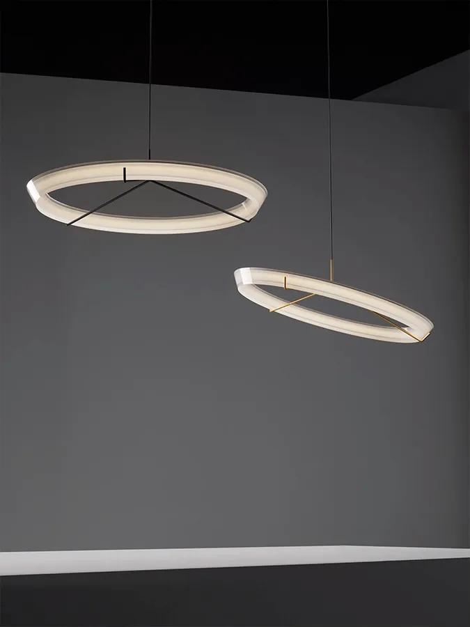The Halo Jewel hanging lamps , configurations featuring straight and circular pieces are a Martín Azúa design.