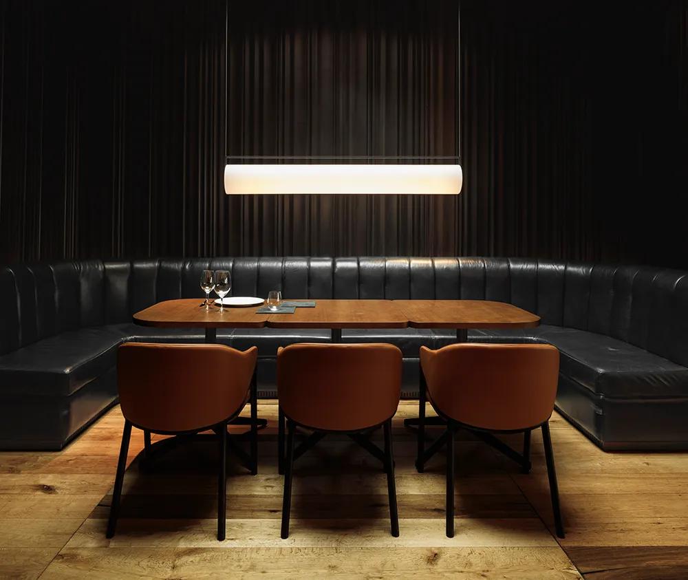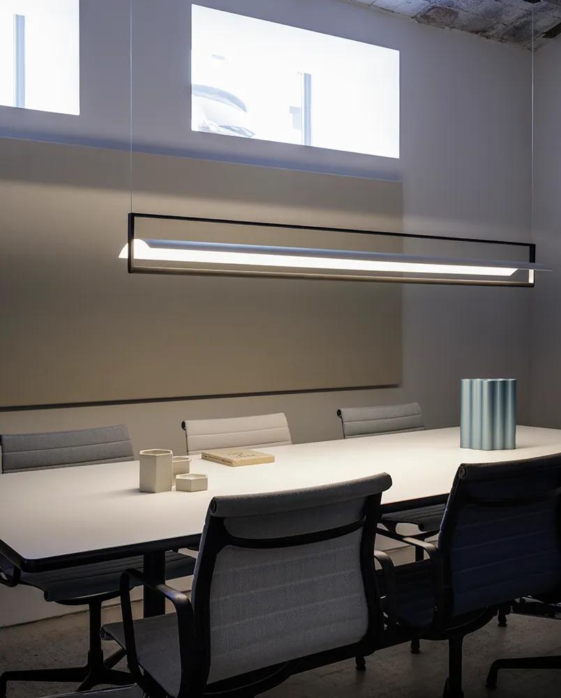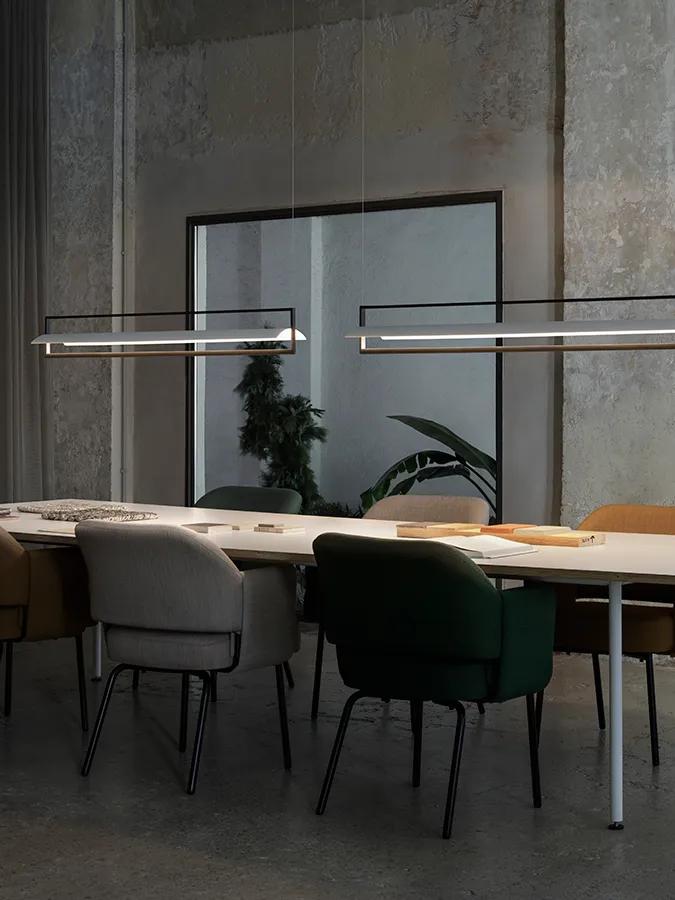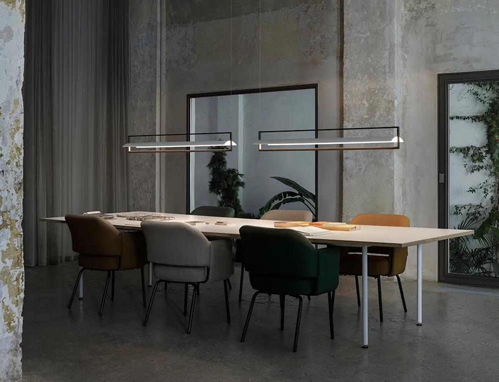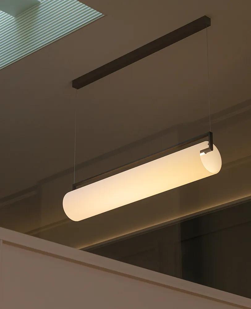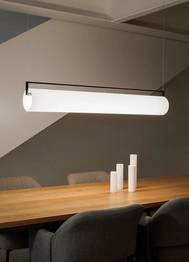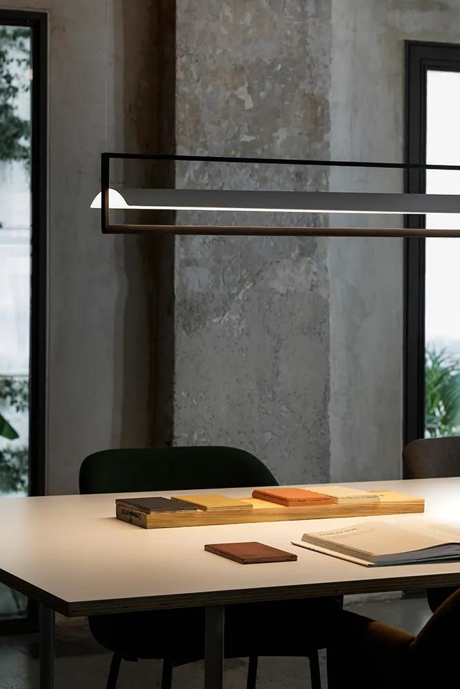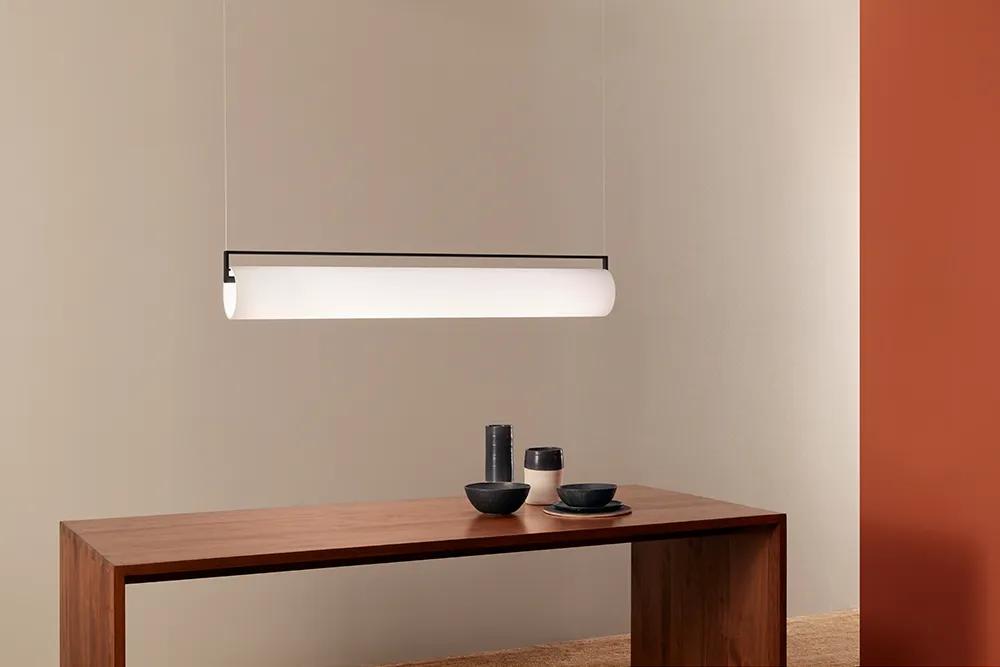 The Kontorno pendant luminaire transforms illumination into an elegant black contour suspended in the air.